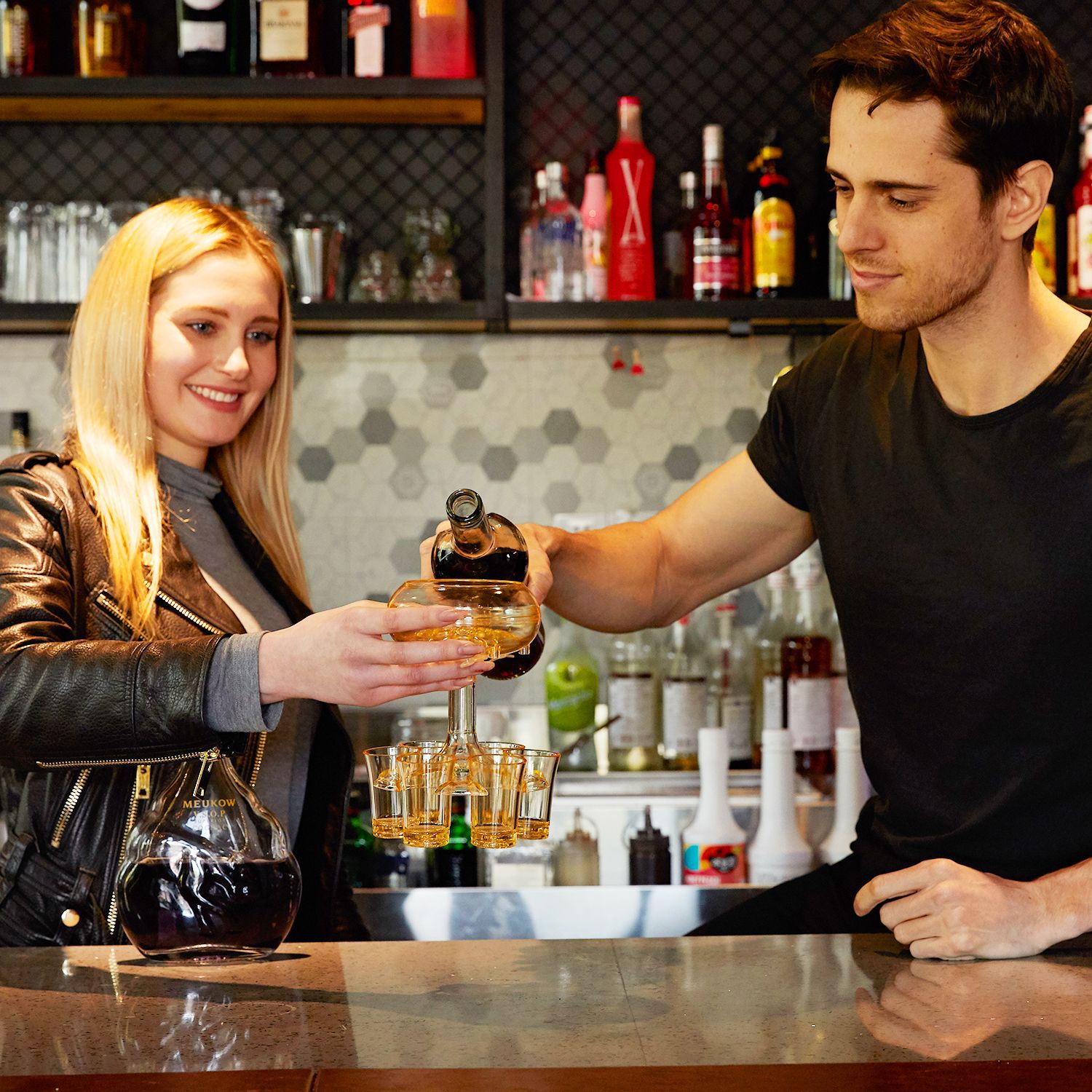 国境を越えた爆金分酒器6杯のデキャンタ6ショットグラスのディスペンサーとホルダー