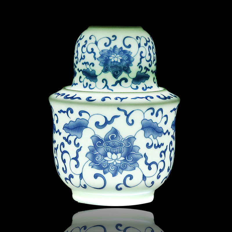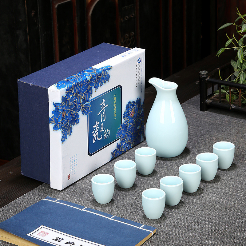 ワイナリー 1 ポット 8 カップ青と白のワインセットギフトボックスセット白ワイングラス白磁ワインディスペンサーロゴ青磁セラミックワインボトル