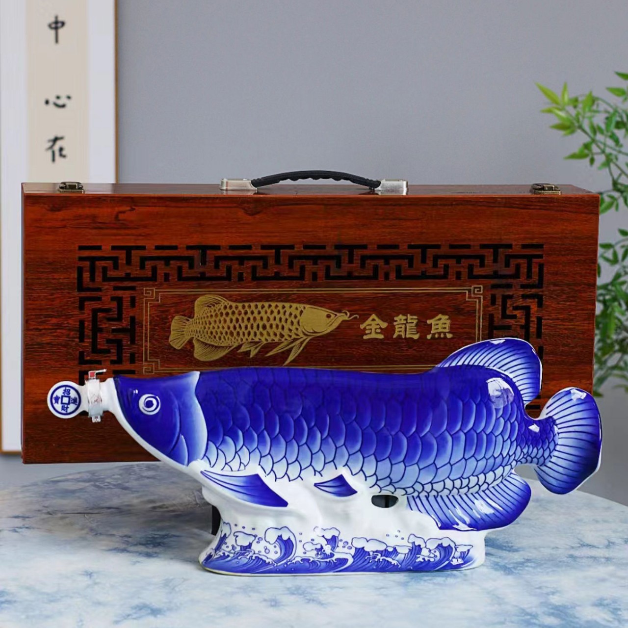 景徳鎮 1.5kg パック青と白の釉薬アロワナセラミックワインボトル 1.5kg 家庭用密封酒瓶 1500ML 酒瓶