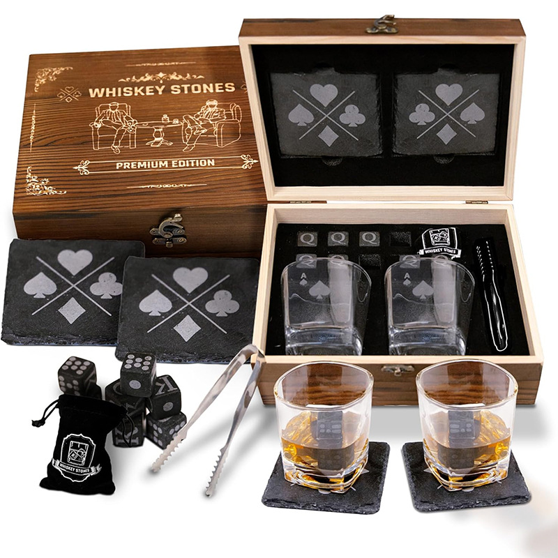 ソースメーカークロスボーダーホットセールワインストーンセットウイスキー木箱アイスワインストーンセットガラスワイングラスギフトボックス
