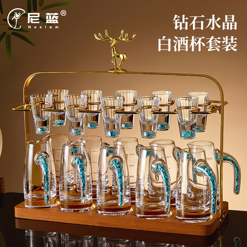 軽量高級白ワインカップワインラックハイエンドクリスタルガラスワインディスペンサー小さなワイングラスワインボトルカップホルダーワインセット