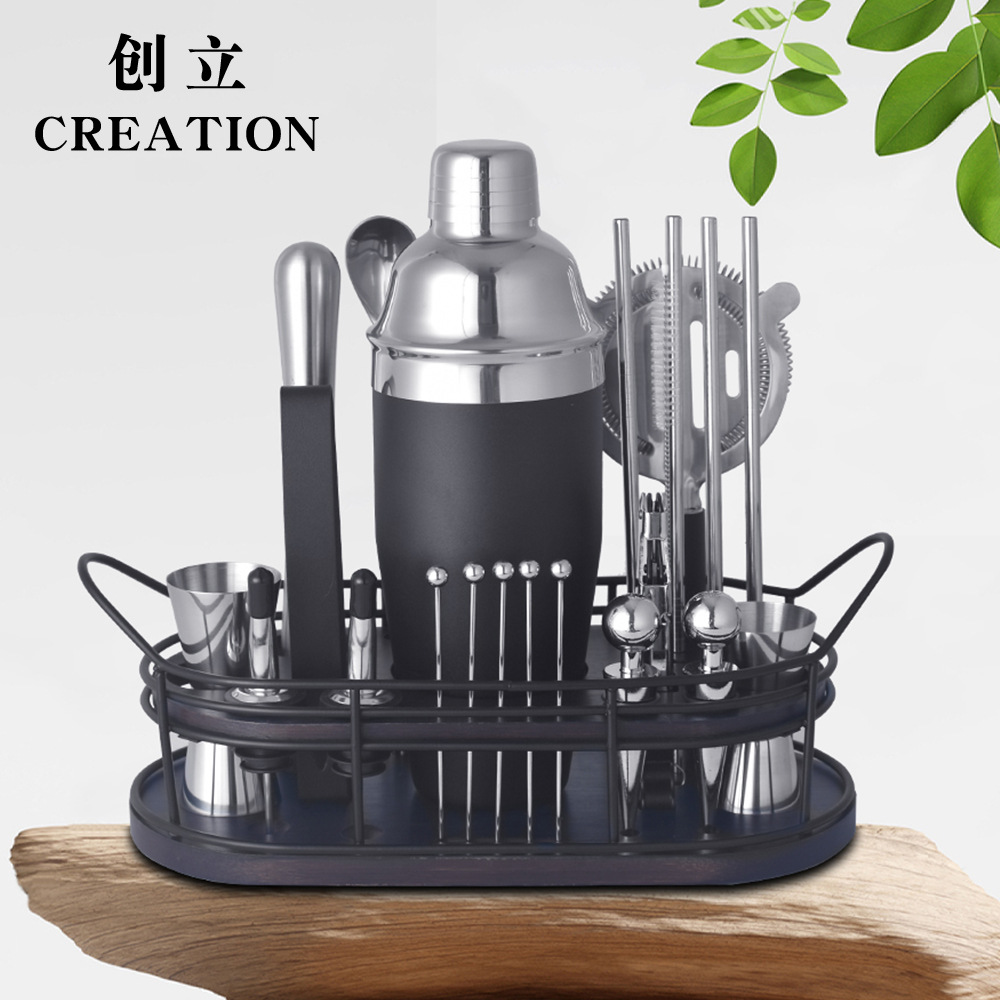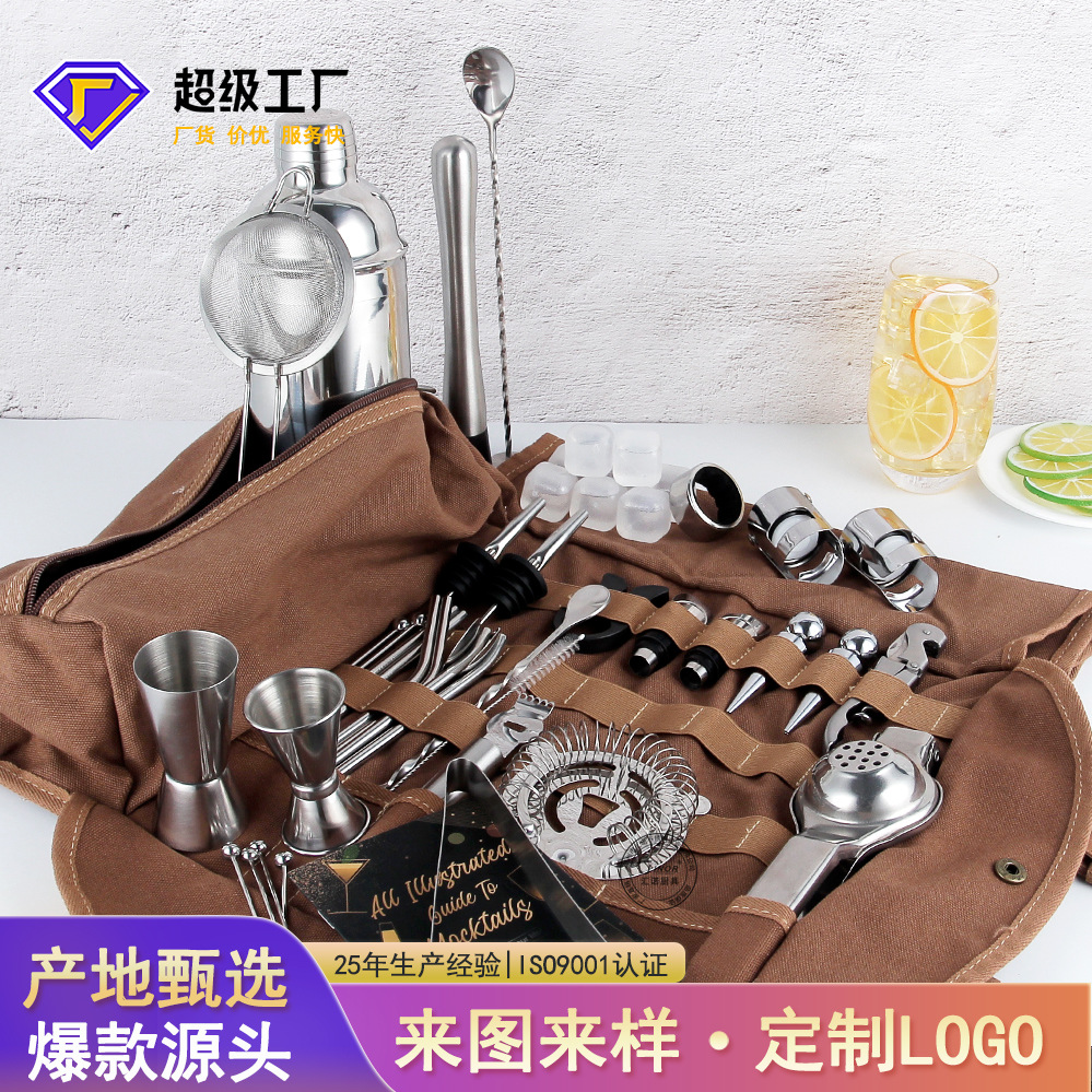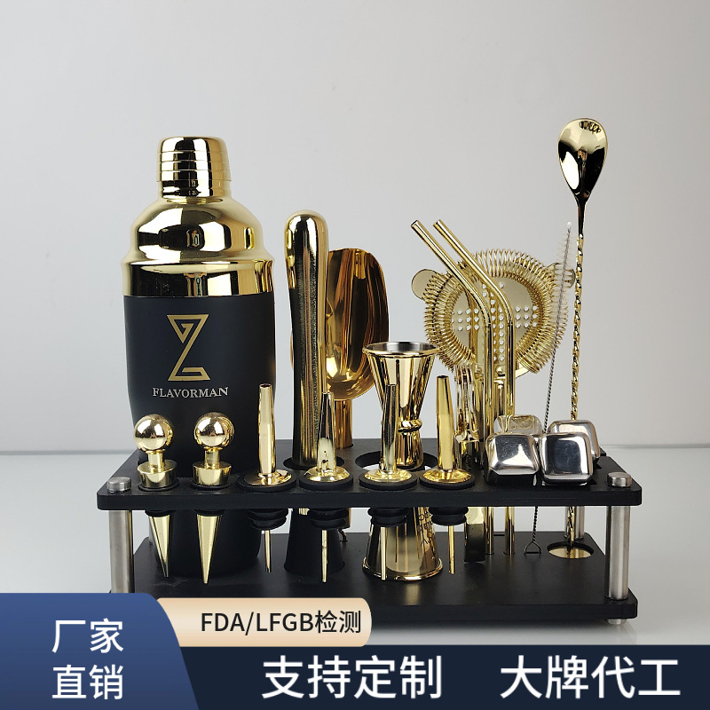 クロスボーダーステンレス鋼カクテルシェーカーセット家庭用バーテンダーツールシェーカーカップシェーカーセット竹スタンド付き