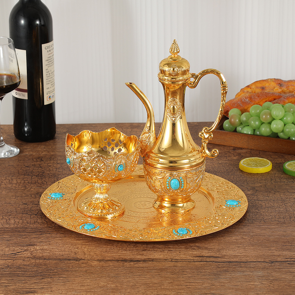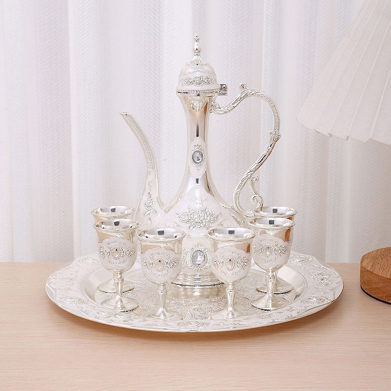 新しいハイエンドのワインセット、ポットとカップ、クリエイティブな家庭用ゴールデンサファイアワイングラス、ホテルの宴会テーブル