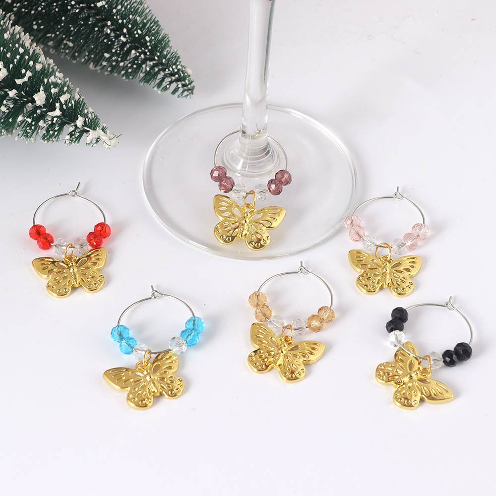 蝶ワイングラスリングクリエイティブクリスマスペンダント赤ワイングラスビーズペンダントパーティーカップ識別動物ワイングラスペンダント
