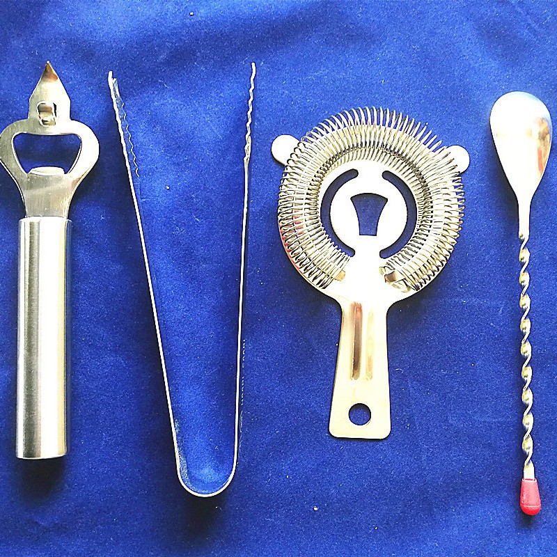 ステンレス製ミキサーセット、バーカクテルミキシングツール、アイスクリップ、ボトルオープナー、ミキシングアイスセパレーターセットの4点セット