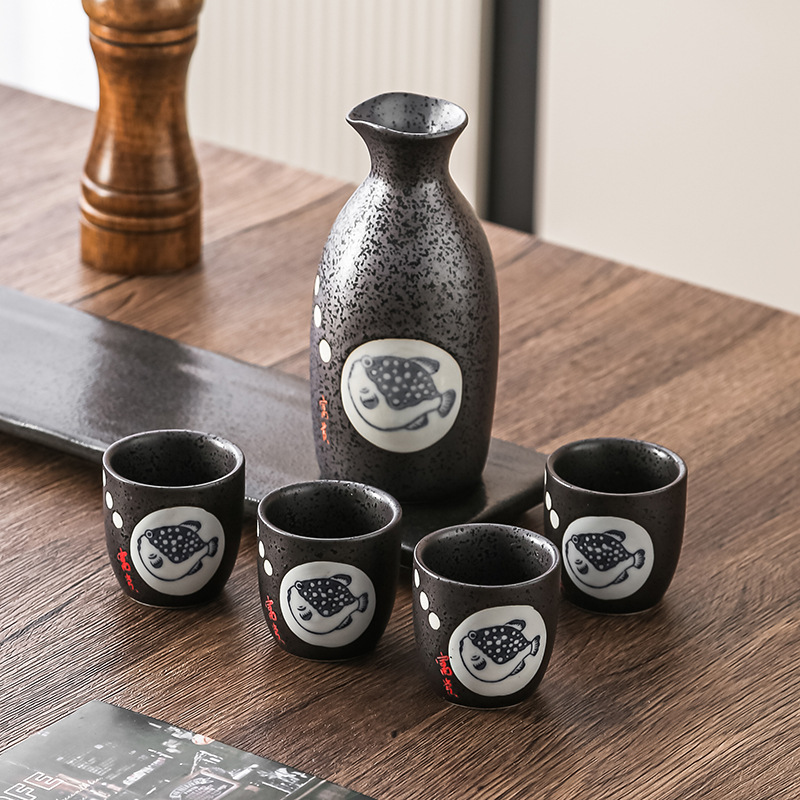 日本手描きセラミック酒器ギフトボックスセット 1 ポット 4 カップセラミック大容量ワインボトルワイングラスワインセット卸売