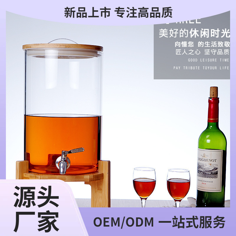大容量高ホウケイ酸ガラス酵素樽家庭用ワインセット蛇口付き竹蓋密封飲料ワイン樽