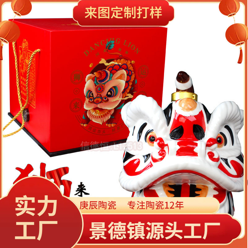 空のボトル、幸運のライオン干支景徳鎮セラミックワインボトル 4kg パックワイン瓶アート装飾品