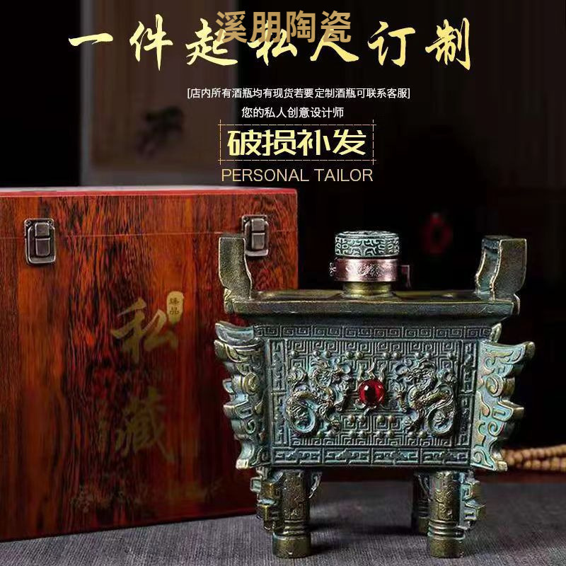 模造ブロンズセラミックワインボトル 3/3 2.5kg ギフトボックスクリエイティブレトロダブルドラゴンディンワインセットワイン瓶家庭用密封セラー