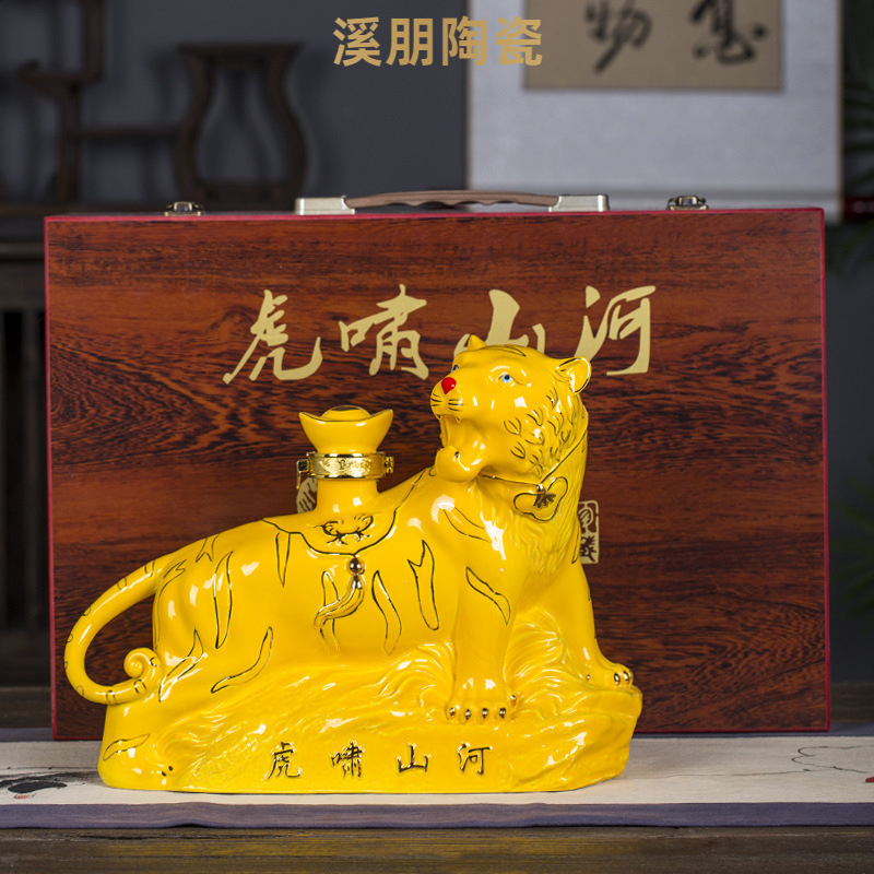 セラミックワインボトルギフトボックス 2.5kg カラー釉薬ゴールド虎の咆哮山川ワインセット家の装飾リビングルームの装飾品セラー