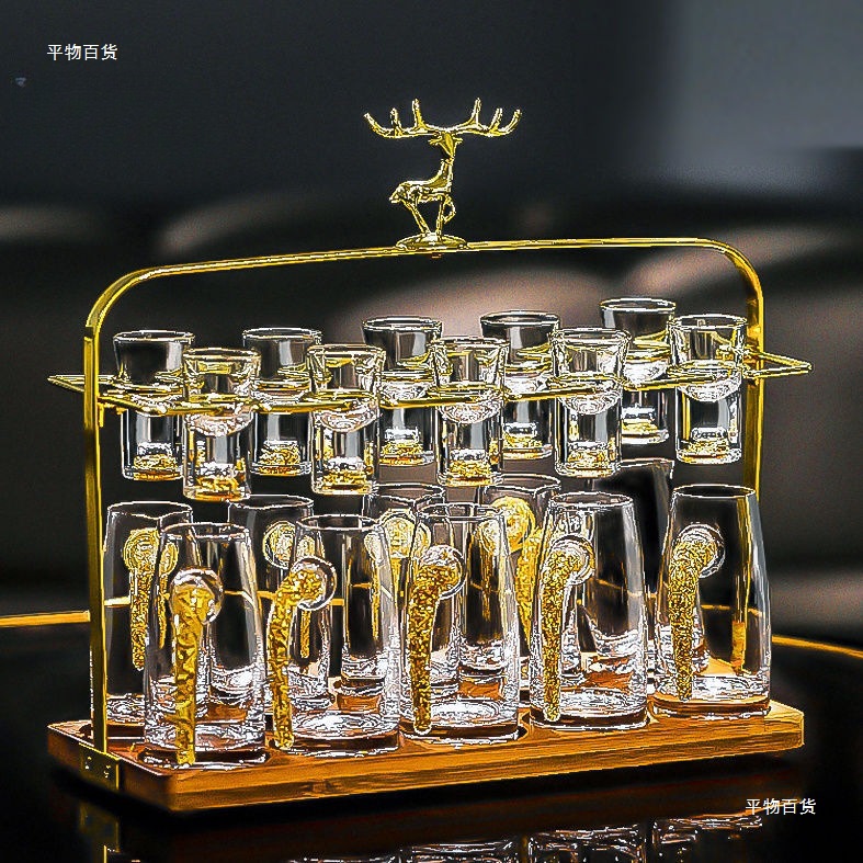 高級軽豪華水晶ガラス白杯セット家庭用金山一口杯小杯二両藍山分耐久性