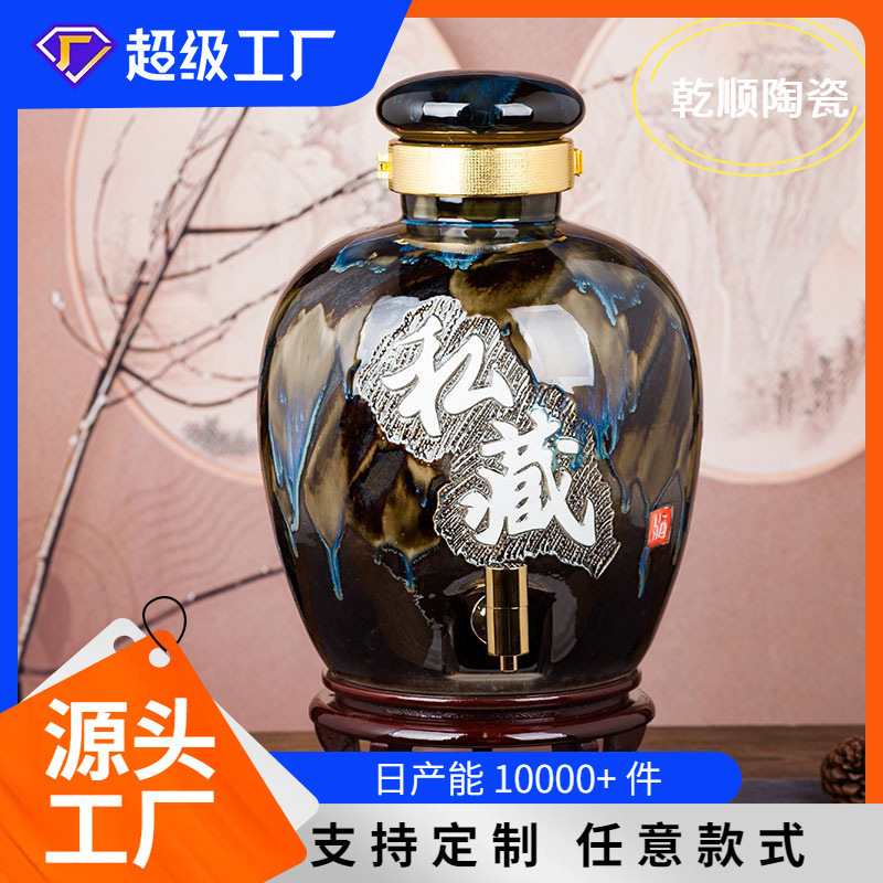 セラミックワイン瓶双耳花釉蛇口付き 10/20/30/ 25kg ワイン保存瓶密封装飾品