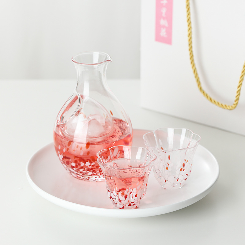 和風彩点1ポット2杯清酒セット結婚誕生日プレゼント酒具水晶ガラス家庭用氷酒セット