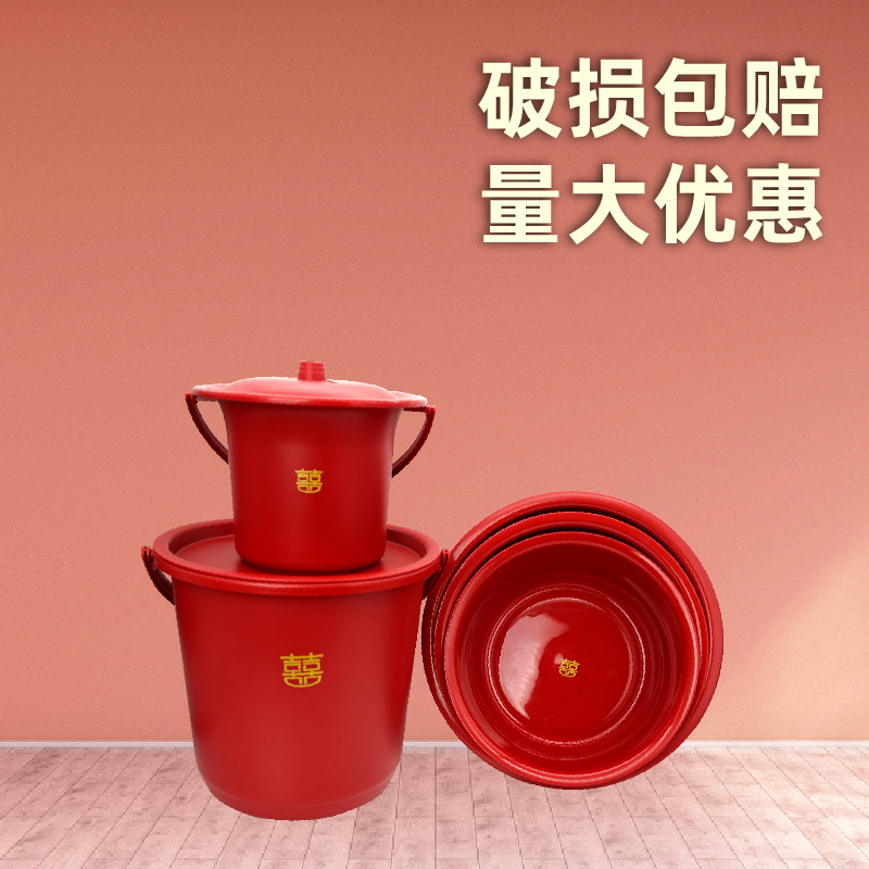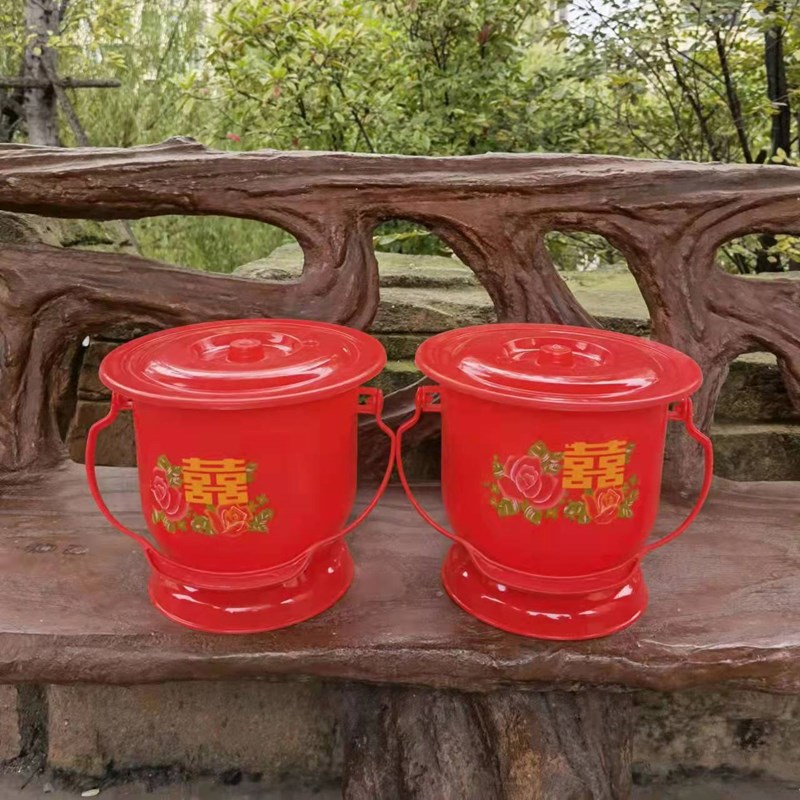 メーカー直販ppプラスチック痰盆手提げカバー付き赤いお祝い用品痰盆