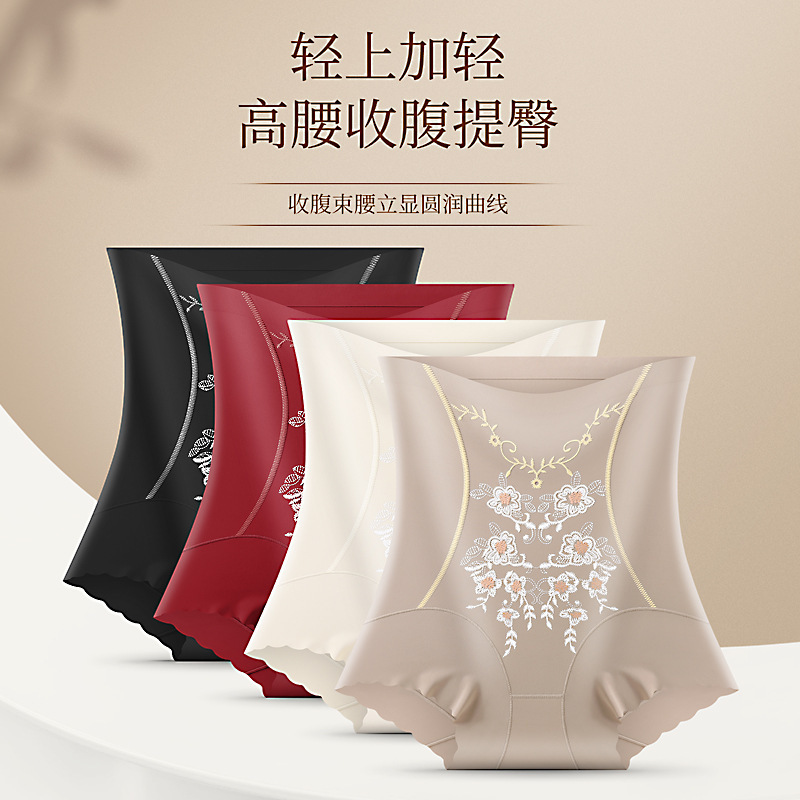 1603夏の軽薄ジャカード高腰女性下着セクシー高開フォークシルク涼しい収腹提尻下着