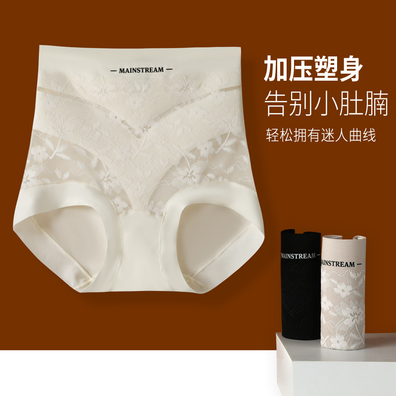 99446 # 新しいハイウエストシームレスマイクロプラスチックおなかコントロールアイスシルク女性用下着