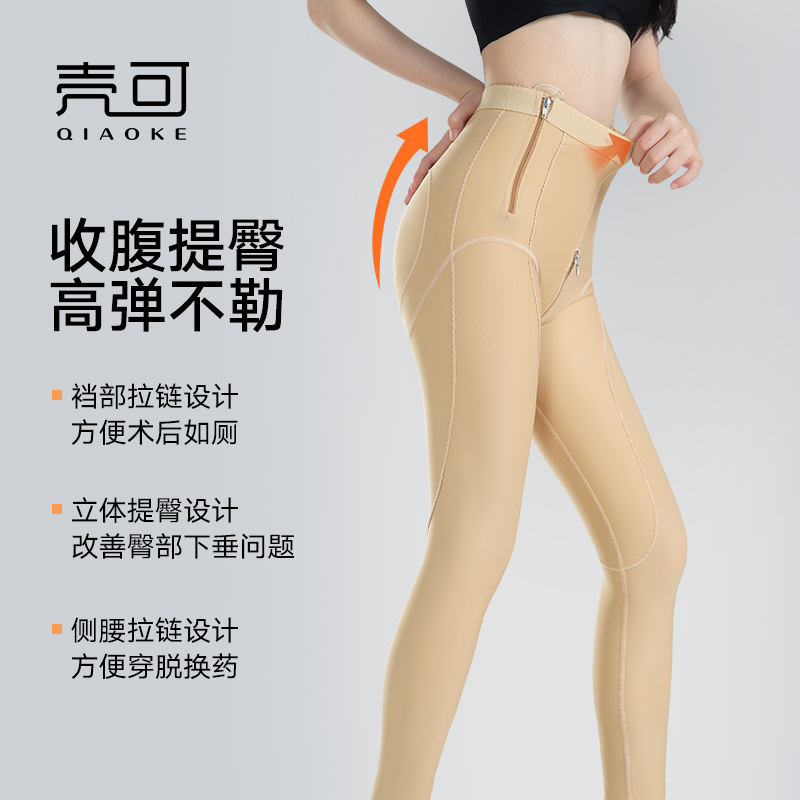 太もも脂肪吸引術後整形パンツ、ファーストステージ、ウエストと脚用ジッパー付き、ハイウエスト、ヒップアップ、伸縮性のあるシェイプパンツ、ヒップを包み込む