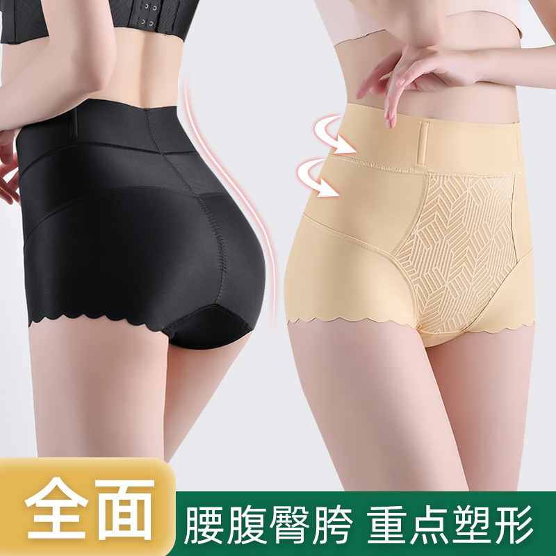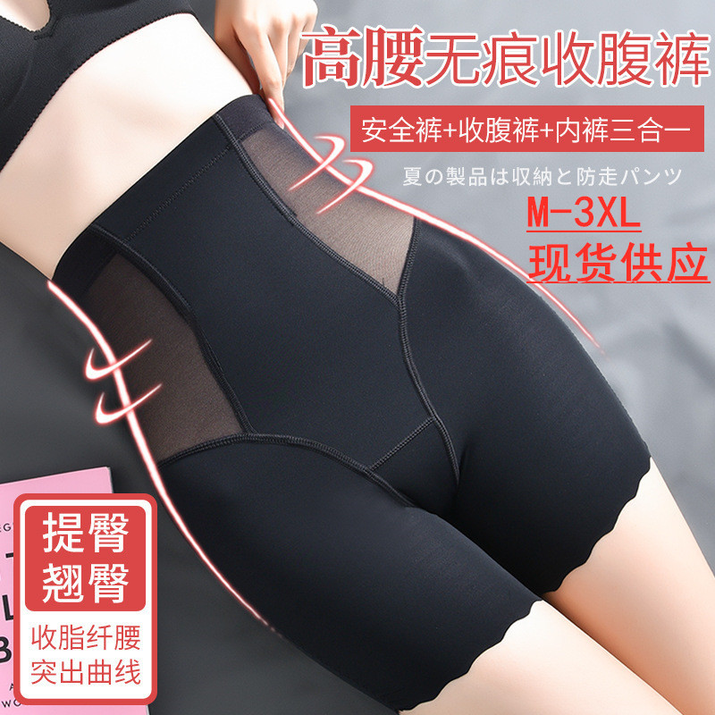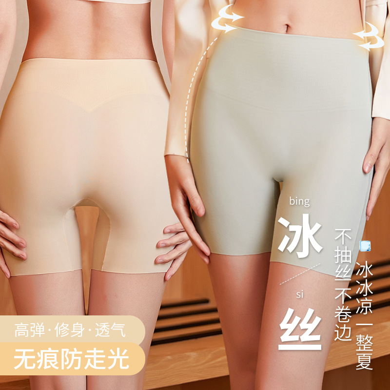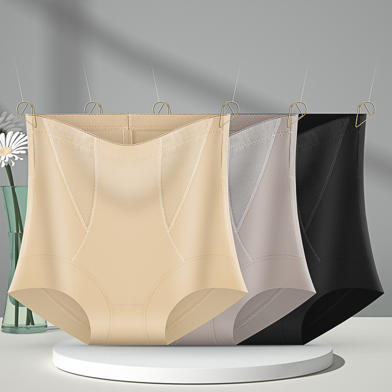 夏用薄手ハイウエスト痩身シルバーショーツ、太った女性向け、アイスシルク、シームレス、ボディシェイピング、腹部引き締め、ウエスト引き締め、ヒップアップ、シェイピング