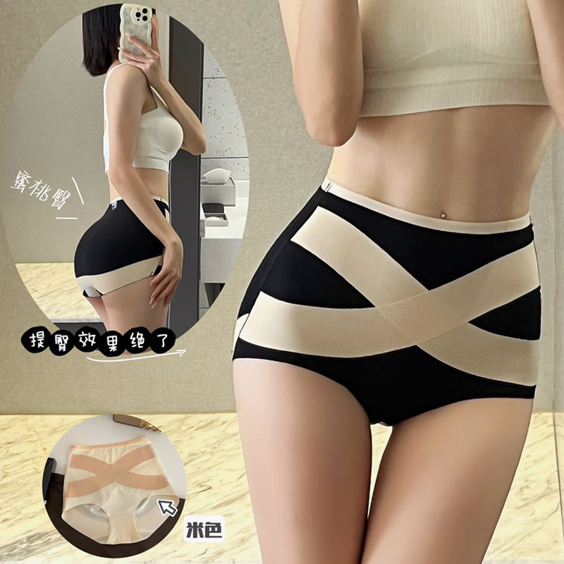 Douyinの人気ハートキスレディースミッドハイウエストバイオセラミックメンテナンス露出防止腹部シェイプクロスボクサーパンツ