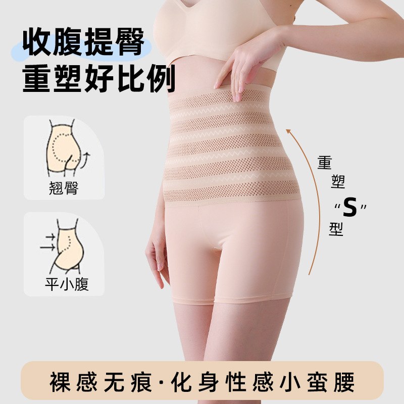 メーカー直販高腰提尻シームレス蜂の巣収腹ズボン産後延長平角シェイプアップ下着美体安全ズボン