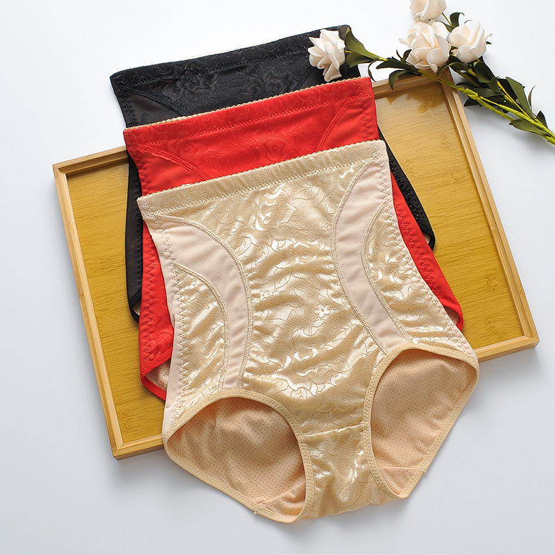 女性用ミッドハイウエストレースおなか引き締めヒップ下着、産後通気性ウエストシェイプ三角ボトムショーツ D6271