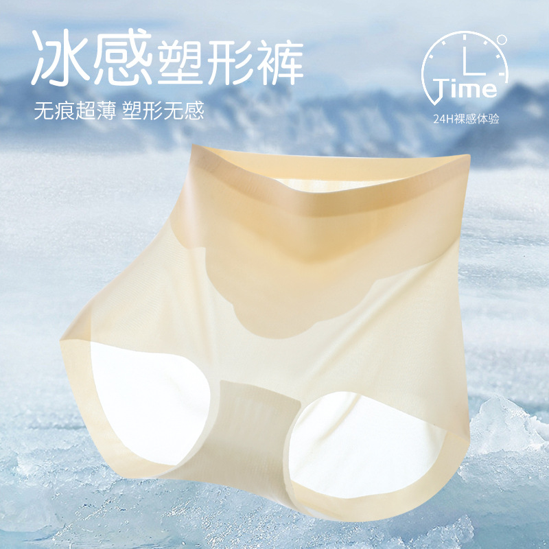 アイスシルク大きいサイズハイウエストシームレスおなかコントロールパンティー女性の強力なおなかコントロールバットリフトウエストシェイプ夏薄いスタイル