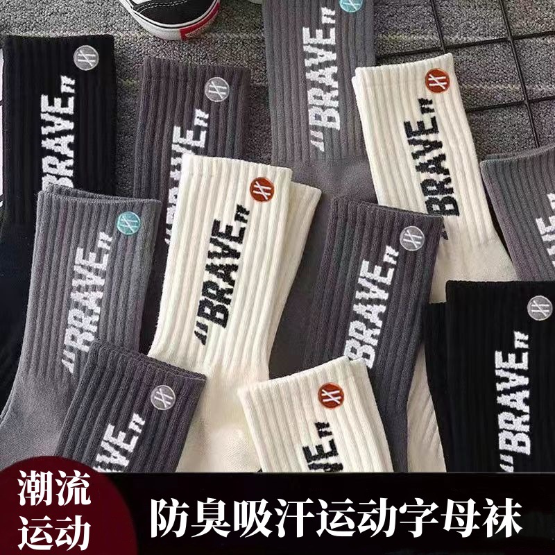 靴下メンズミッドふくらはぎポリエステル綿靴下消臭吸汗性白スポーツ秋冬メンズソックスストリートイントレンディソックス