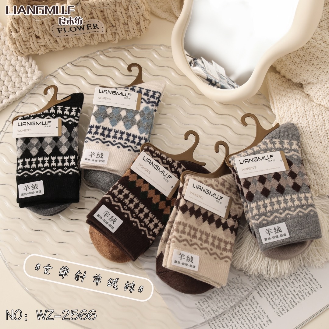 良木紡秋冬新作厚手レディース中筒カシミヤ靴下日韓系ファッションタイプ学生スポーツクリスマスウール靴下