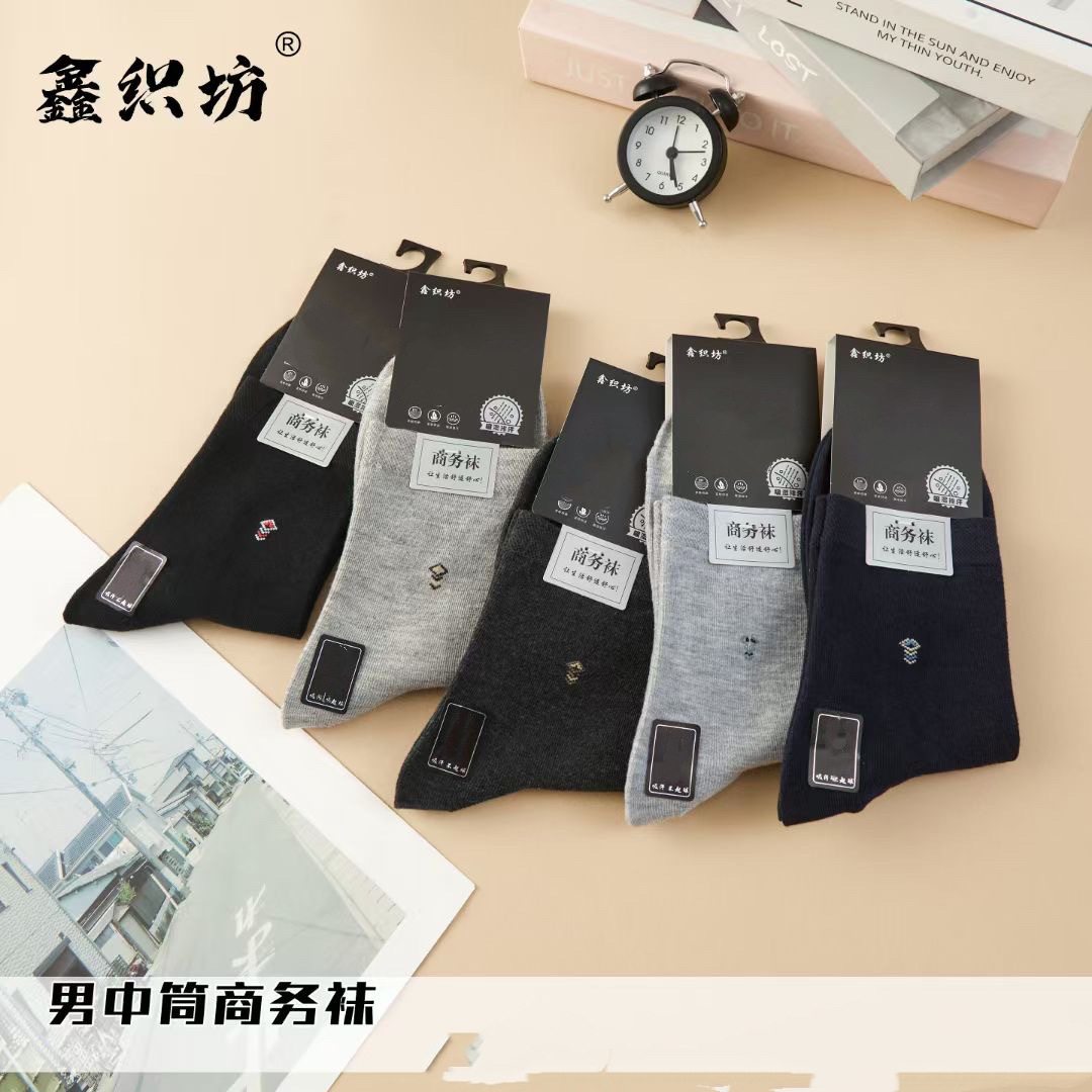 男性運動双針綿靴下秋冬ビジネス男性靴下純色中筒靴下メーカーの靴下卸売り