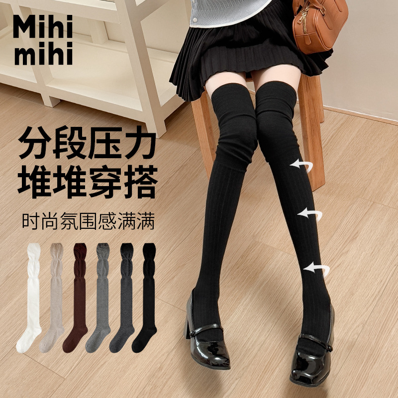 膝を越えた靴下の女性秋冬の純色のストッキングは、縦条ネットレッドins高筒が痩せているjk太ももの靴下を落とさない