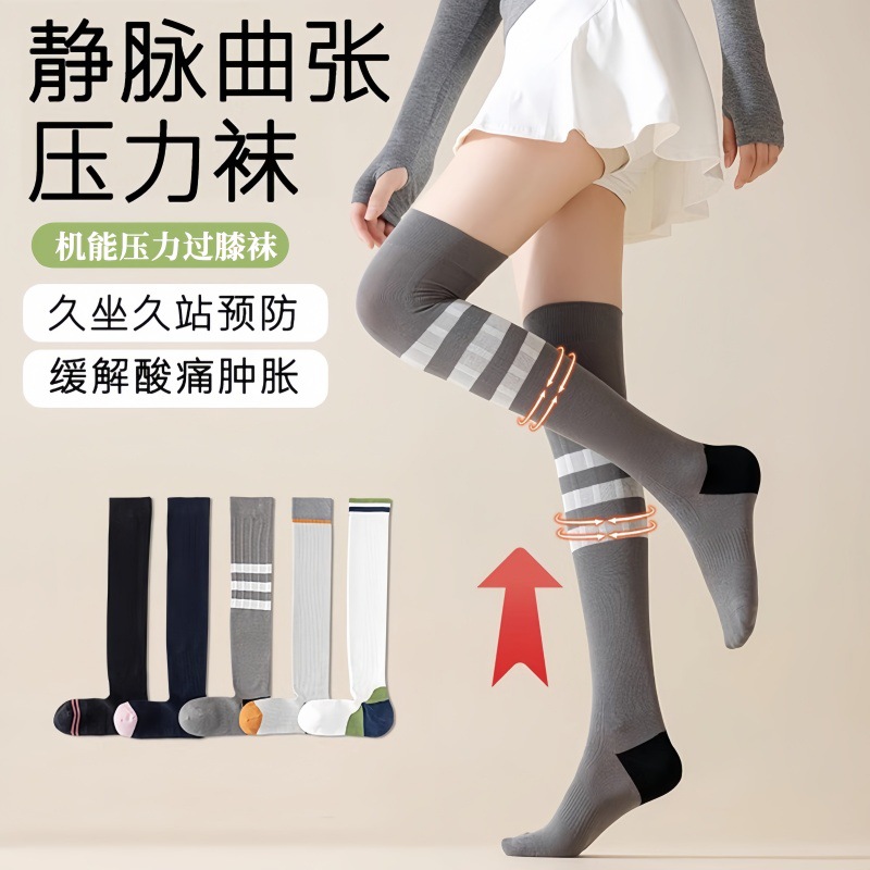 アマゾン圧縮ソックスふくらはぎソックスカラーストリップ圧力ソックス男女弾力过ひざソックスコンデンサーsocks