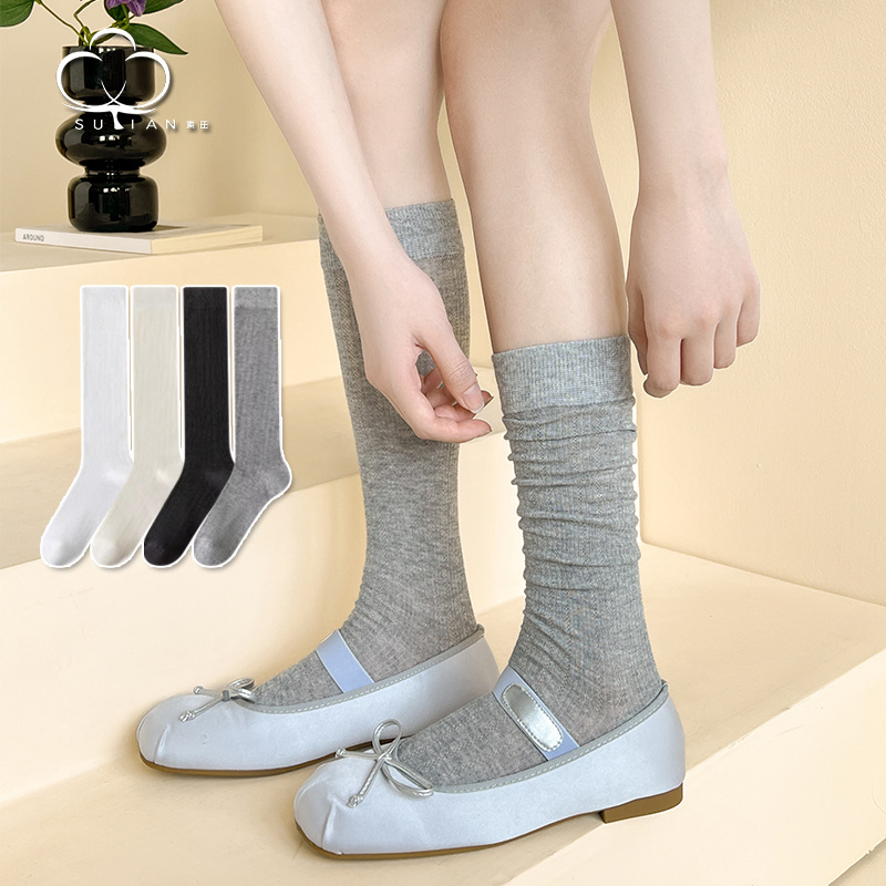 灰色のふくらはぎの靴下の女性の夏の薄いタイプのストッキングの女性のスタッキングソックスの女性の白いストッキングの日本のかわいい靴下