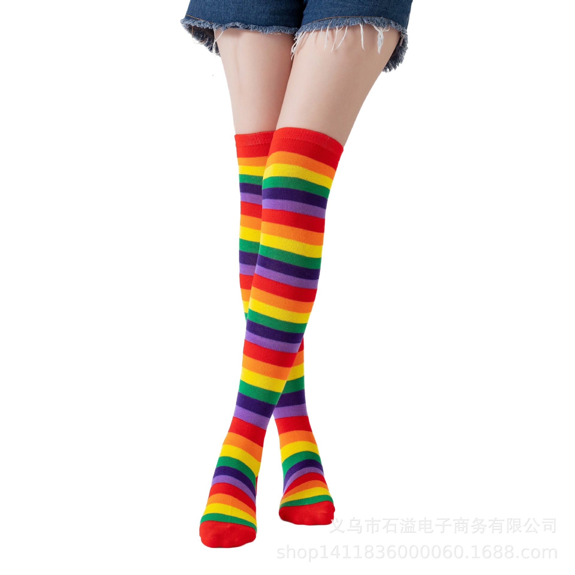 メーカー卸売り七虹膝ストッキング女性ハロウィーン衣装ダンスストライプ四季通用靴下