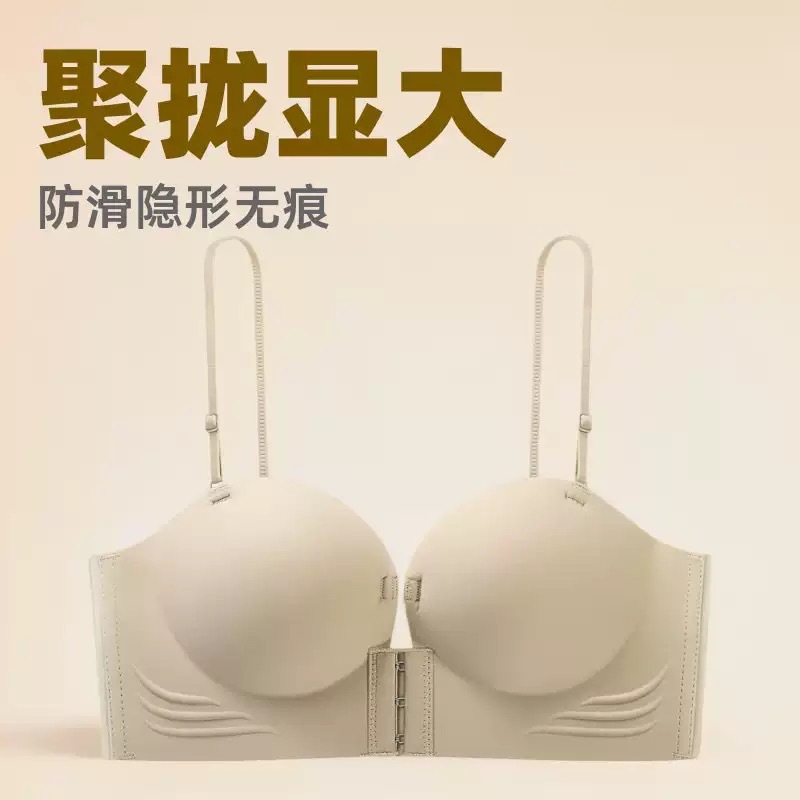 高品質のクロスボーダーの前ボタンの下着は肩ベルトがなくて、滑り止めがなくて、胸が見えません。