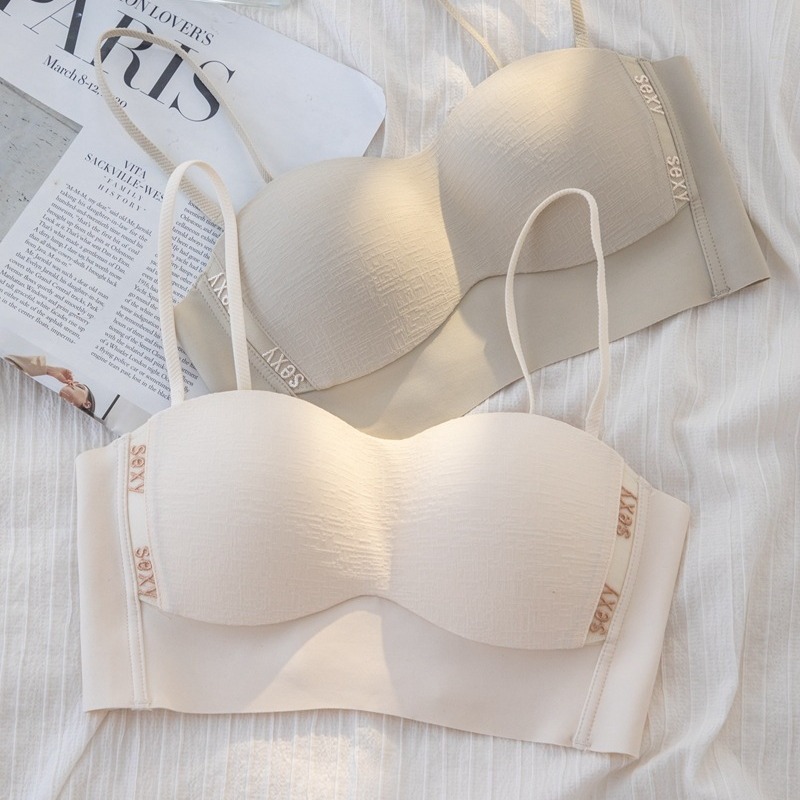新商品の肩ひもなしで胸を拭く下着の女性のスチールリングなしの胸が集まっています。