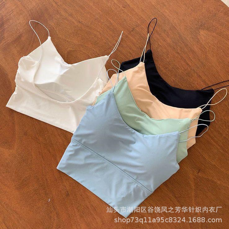 韓国の油絵の女性のストラップのベストの短いタイプの夏の外は性感を着て胸のパッドの無鋼の輪のinsの小さい清新な美の背中を持ちます。