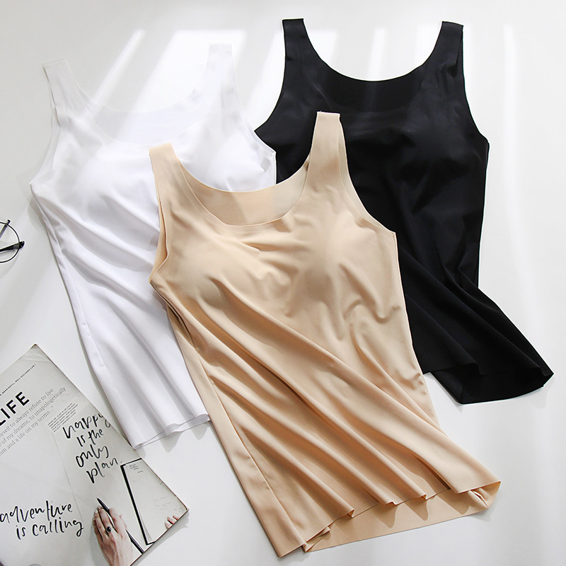 セクシーな女性用キャミソール、胸パッド付き、2025年向けインナー、露出防止、ノースリーブブラトップ、アイスシルク、シームレス