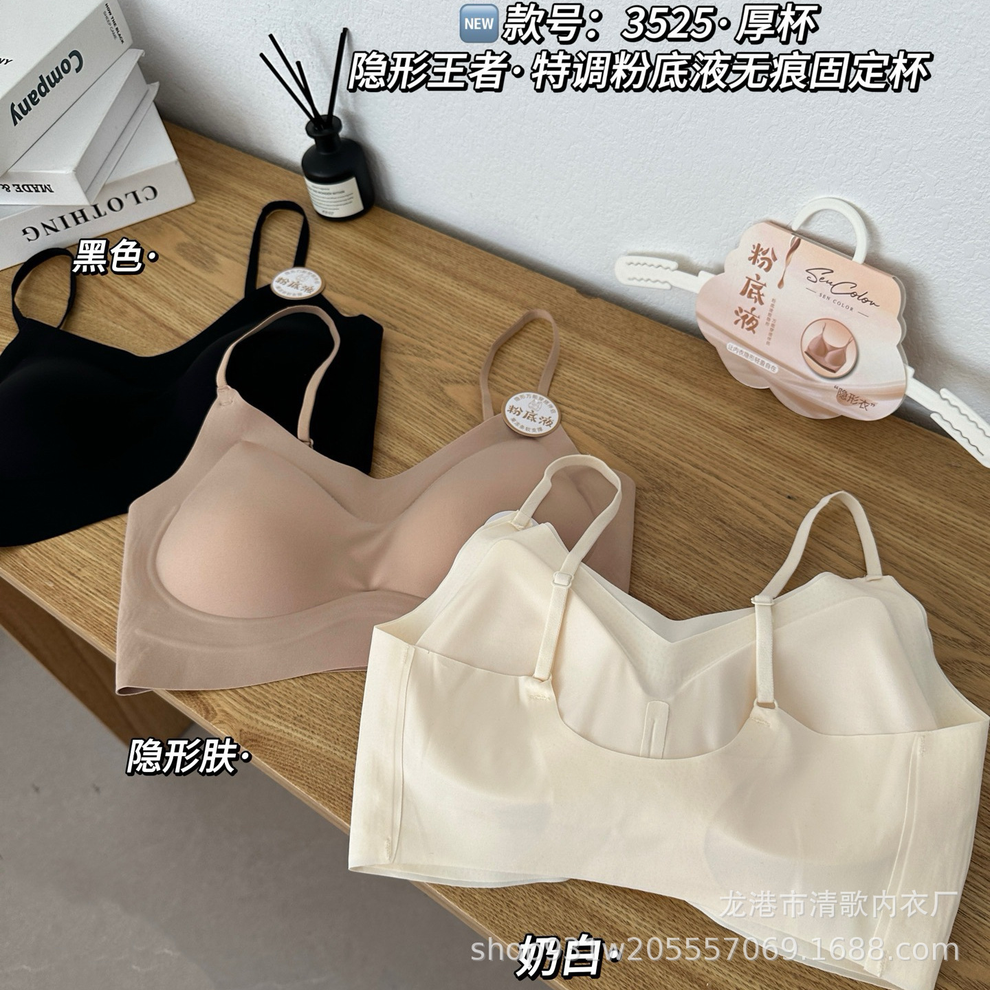 衣類ハンガーに取り付け可能な3525固定厚カップ美背胸巻きブラ、Vネック細肩紐Uバック、ファンデーション液のような透明感のある女性用下着