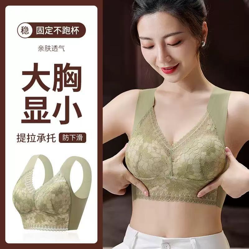 【セット】国境を越えたフランスレースの美背に胸を巻いたスチールリングがない下着の女性が大きいサイズの三角カップのブラジャー