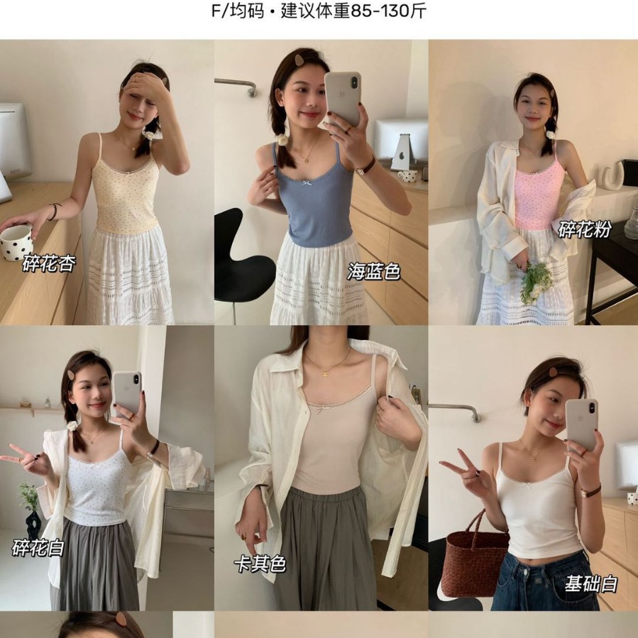 小清新な砕花の小さなストラップの外には、胸を拭くシフォンの砕花ベストを着て、臍の甘い短い上着を露出しています