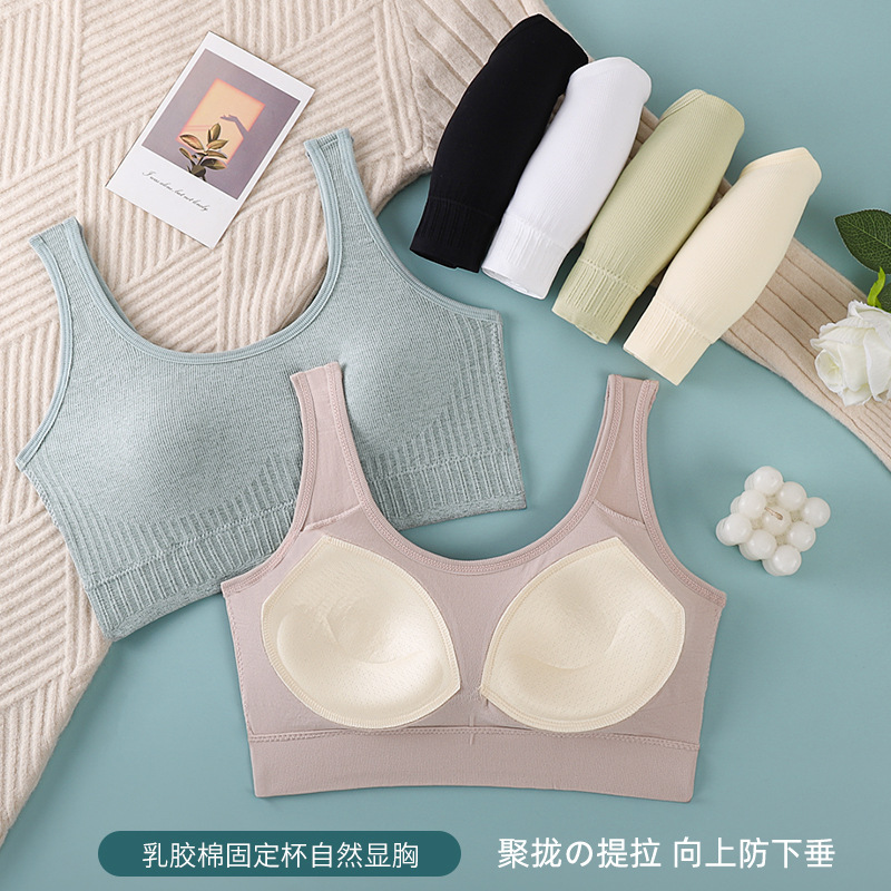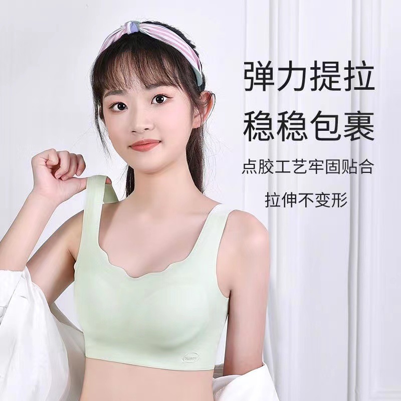 シームレス下着女子大学生高校生固定カップスチールリングフリー运动滑り止め防震防震美背少女文ブラジャー