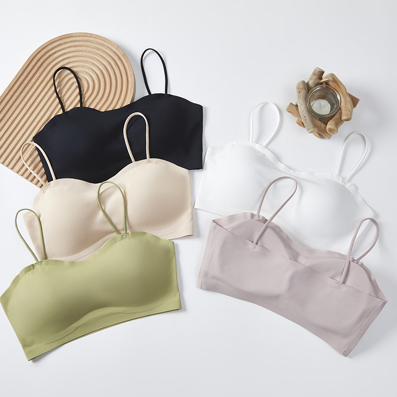 薄い夏の美しい背中アイスシルクサスペンダーインナーフィックスカップベスト女性の夏のベース露出防止チューブトップラップ下着