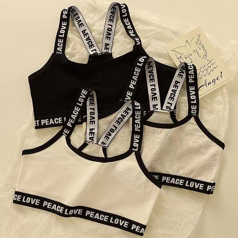 胸を拭く綿の少女の発育期の純色の肩ひものない中学生の9-16歳の下着は胸を巻いて運動してブラジャーを踊ります。