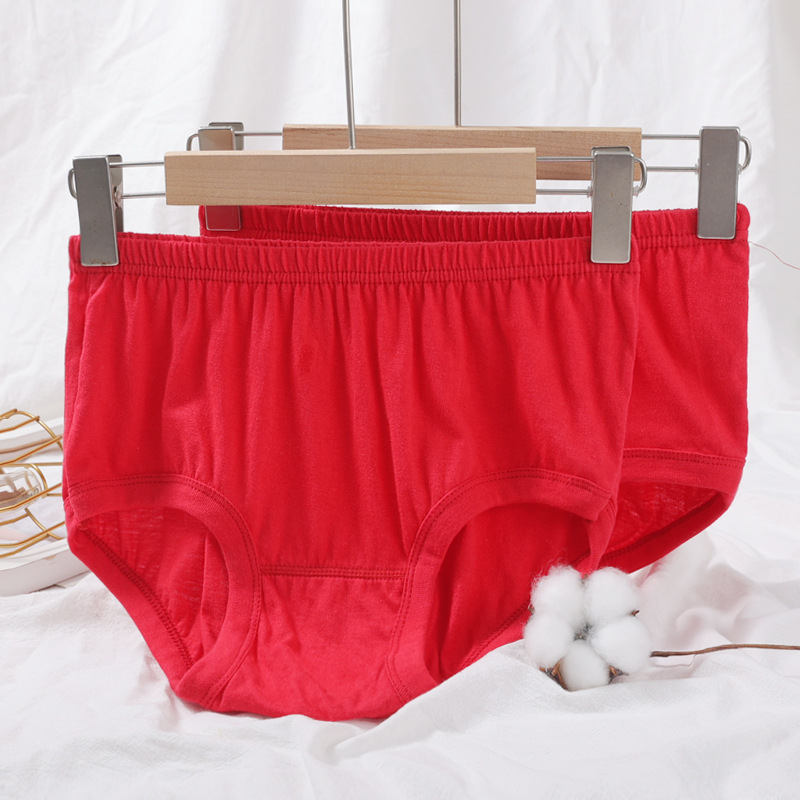 中高年の下着の女性の純綿の本命の年の大きい赤色のゆったりしている大きいサイズの高齢者の男性の高腰の綿のズボンの頭は赤くなります。
