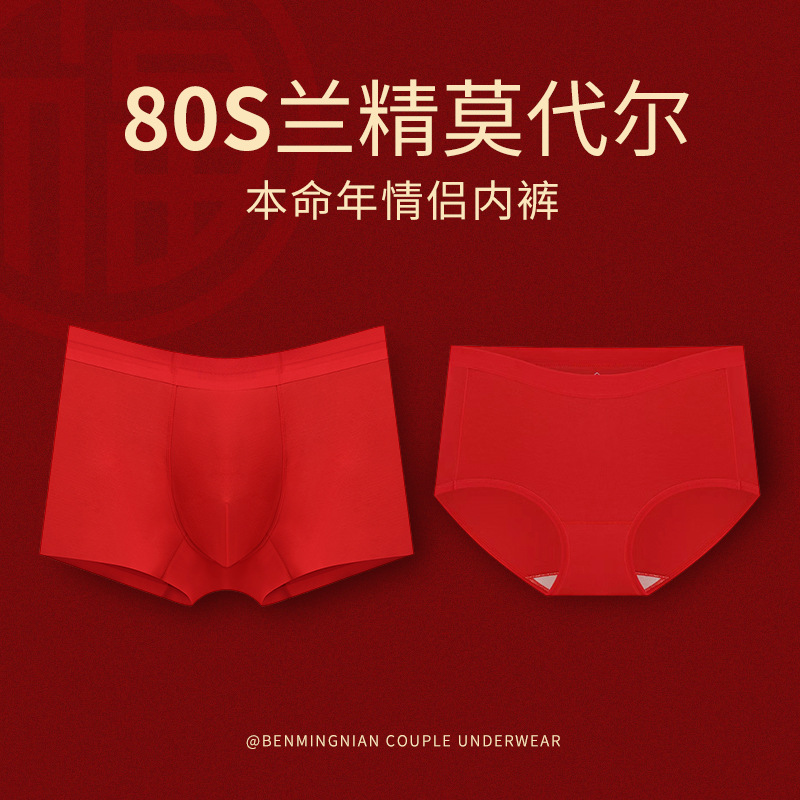 赤い本命年下着80s蘭精モーダルカップル男性女性下着新年結婚プレゼント卸売り