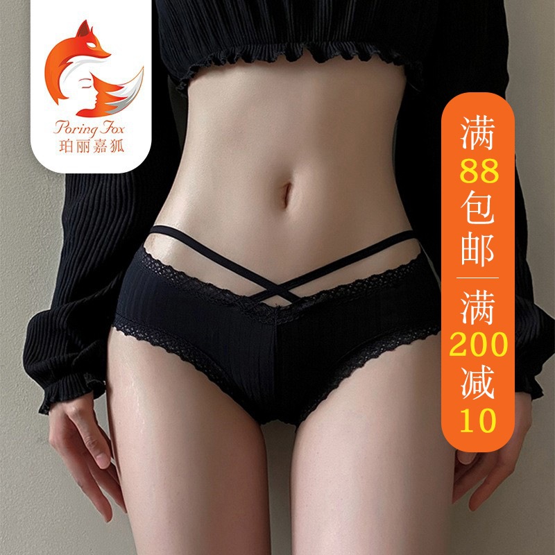 純白ミルク塩 ~ カット男甘系網紗飛辺セクシー少女下着夏の薄いタイプの涼感レース綿の股