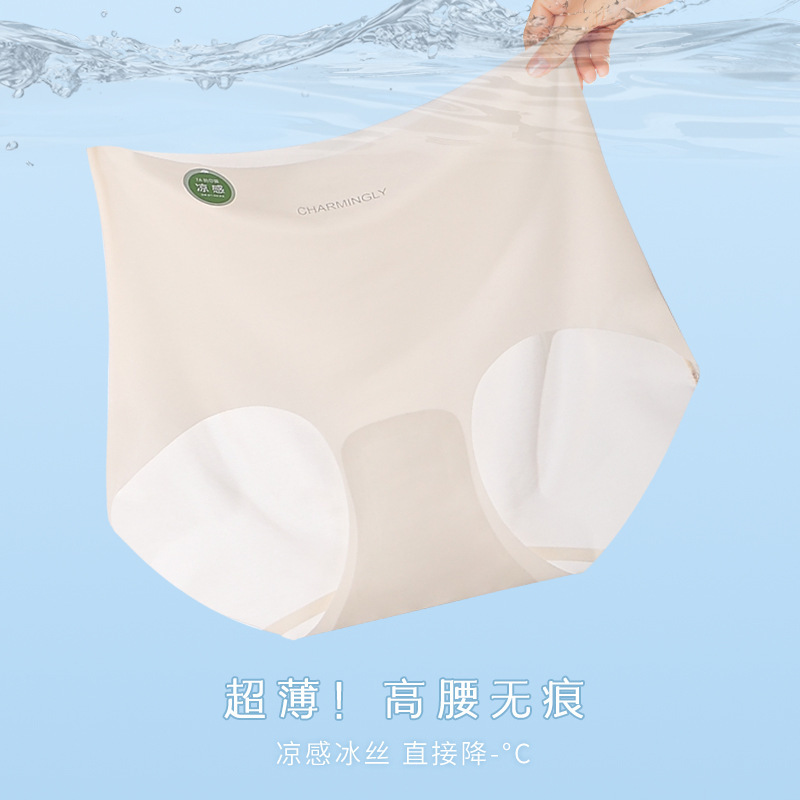 高腰大サイズ無痕超薄氷糸網糸女性下着純綿抗菌股セクシー透明女性三角パンツ