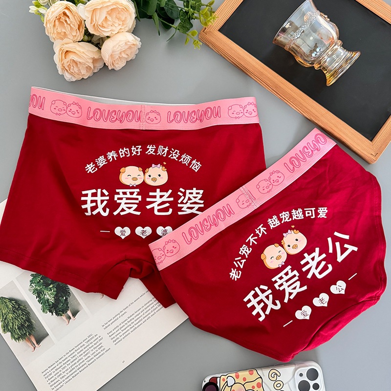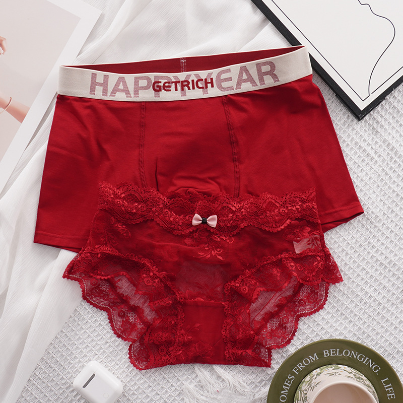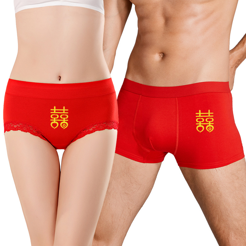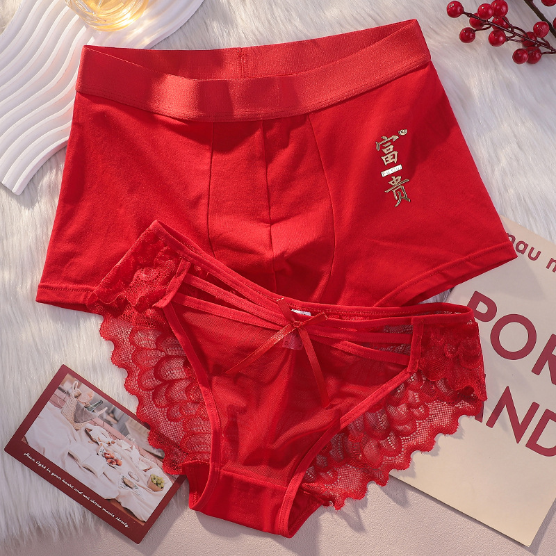 【代理】カップルパンツ2枚赤結婚本命年一男一女新婚下着セット