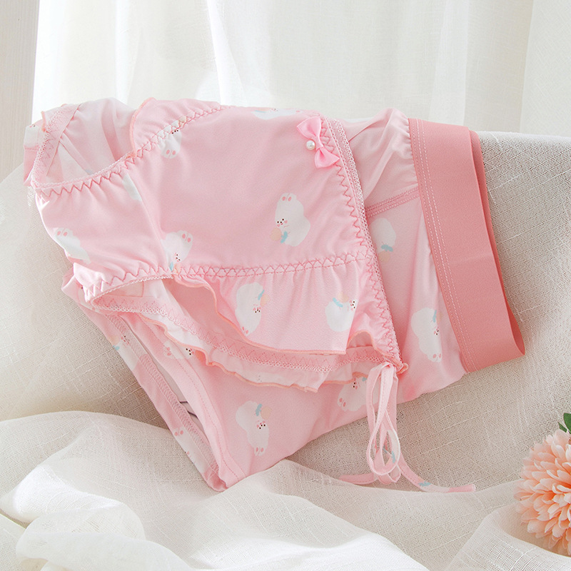 夏の薄いタイプの日本の純粋なカップルの下着の少女のミルクの糸のプリントの男女の下着の女性のバンドの卸売り