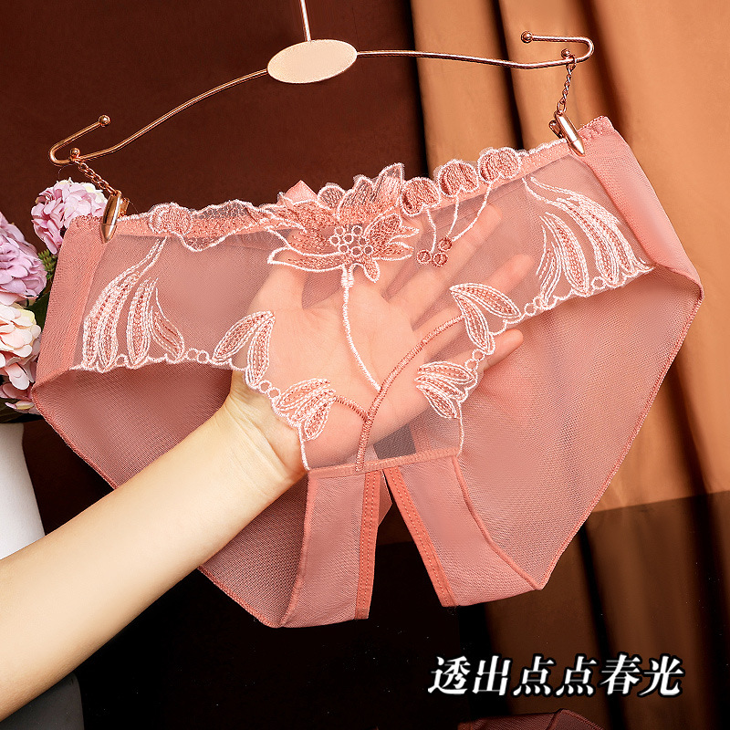 顔蓬薇メーカー卸売り高颜値純欲ネット糸刺繍ギャル開股ズボン軽薄通気低腰金838